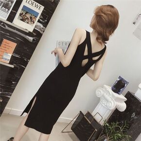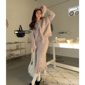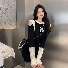 女士过膝毛衣裙秋冬季水貂绒马甲 连衣裙两件套时尚背...