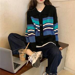 秋装2021新款日系复古毛衣外套女开衫韩版宽松in...