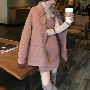 套装女年秋冬新款洋气V领毛衣半身短裙小个子气质显瘦...