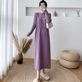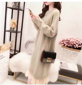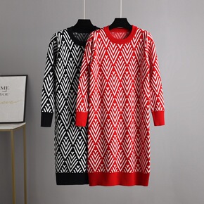 年冬装新款加厚保暖针织连衣裙女宽松遮肚子妈妈装大码...