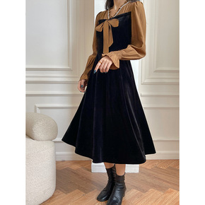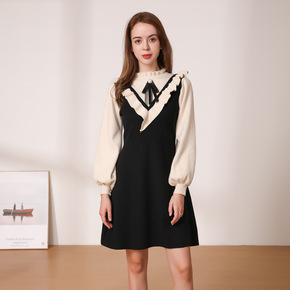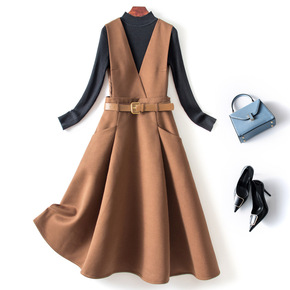 2021秋冬简约假两件过膝针织连衣裙宽松仙女中长款...