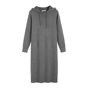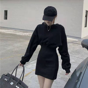 连帽连衣裙女秋冬内搭长袖毛衣裙美式包臀收腰显瘦加厚...