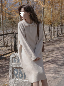 实拍实价 针织连衣裙宽松显瘦百搭内搭秋冬款长款过膝...