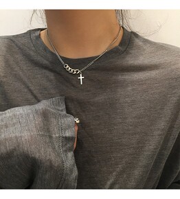 韩版双色镀彩十字项链简约小众设计爱心网红锁骨链饰品...