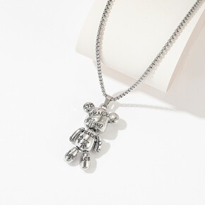 钛钢项链 暴力小熊嘻哈男潮朋克女个性简约毛衣链女小...