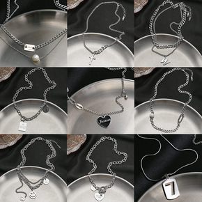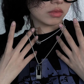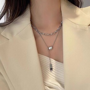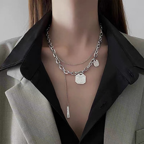 钛钢项链女时尚个性双层毛衣链网红百搭粗链嘻哈风锁骨...