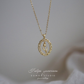与瑜饰品向日葵项链小花朵 钛钢方牌浮雕吊坠欧美in...