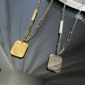 钛钢轻奢高级感不掉色方牌字母项链男女ins冷淡风小...