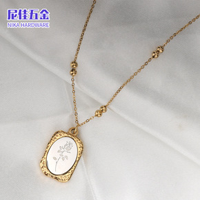 法式复古气质方牌玫瑰花朵钛钢持久保色毛衣链 魔镜方...