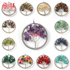天然水晶生命树吊坠女 海蓝宝吊坠 手工DIY招财树...