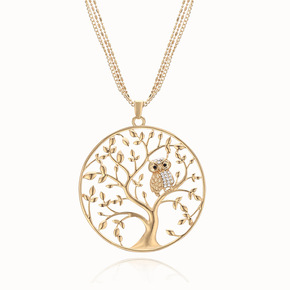 欧美个性猫头鹰吊坠项链 跨境专供创意生命树镂空毛衣...