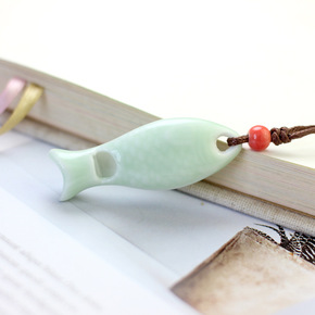 手工简约森系毛衣链 情侣款陶瓷小鱼口哨项链锁骨链女...