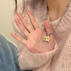 新款时尚韩版欧美精致经典山茶花仿珍珠两层长款毛衣项...