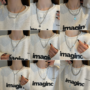 欧美外贸饰品男士项链钛钢吊坠不锈钢韩版长项链女生毛...
