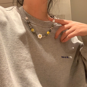 LAVENIR太阳花项链圆珠毛衣链女甜酷笑脸串珠卫...