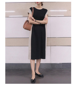 现货ins日韩爆款宽松直筒气质拼色名媛中长款针织轻...
