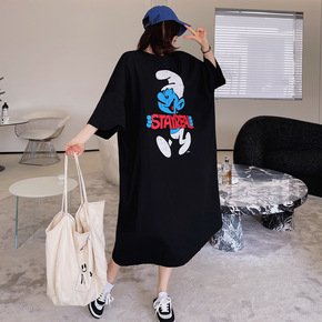 22407#2022春夏新韩版宽松大码中长款卡通印...