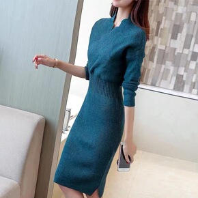 2021秋冬新款轻奢名媛气质针织连衣裙女修身显瘦打...