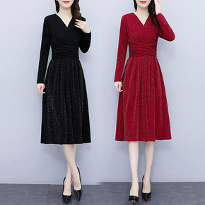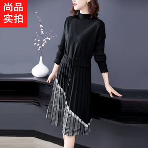 秋冬新款灯芯绒连衣裙2022配大衣的针织拼接长袖打...