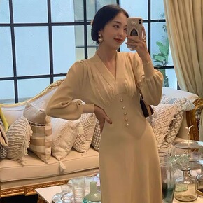 2.19韩版减龄高腰显瘦连衣裙超仙气质中长款裙子...