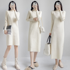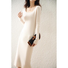 21秋冬新款套头长袖方领羊毛针织连衣裙女士内搭中长...