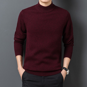 2021冬季新款男士半高领中青年简约休闲长袖套头纯...