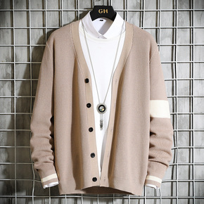 秋季男士针织衫薄款开衫时尚线衣青少年学生毛衣外套男...