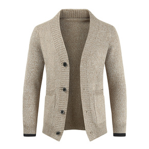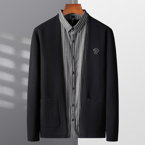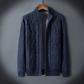 男士开衫秋季加厚外套韩版青年潮流纯色含羊毛针织毛衣...