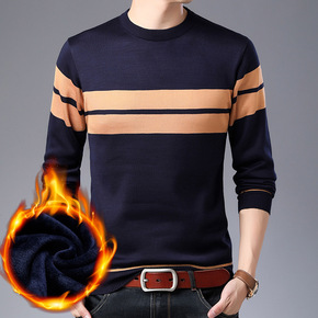 2020秋冬季新款男士加绒加厚针织衫潮流拼色毛衣外...