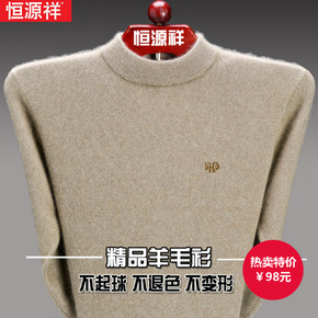恒源祥百搭高领羊毛衫男士100%纯羊毛毛衣韩版潮流...