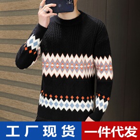 2022春秋季新品韩版时尚针织衫青年男士圆领休闲打...