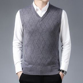 厂家直发秋冬季羊毛背心中年休闲无袖格子V领马夹爸爸...