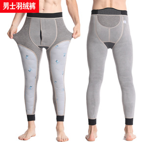 冬季男士保暖裤加绒加厚内穿白鸭绒护膝打底裤修身棉毛...