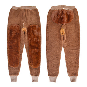 驼色大三护男女羊毛裤冬季加绒加厚东北中老年高腰保暖...