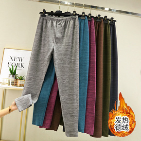 男女士羊毛裤厚款加绒贴片双护修身中老年高腰收口裤石...