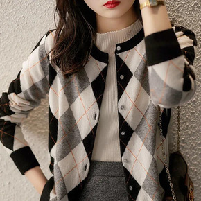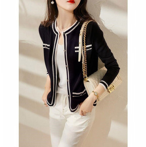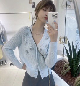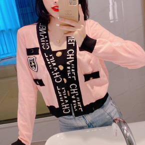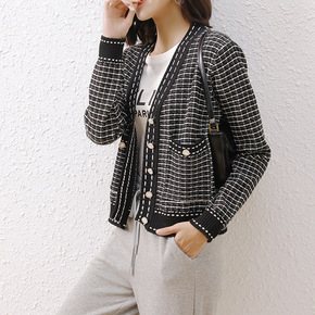 韩版钉珠扣针织毛衣外套气质名媛女装时尚潮流针织衫开...