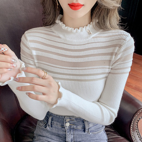 早秋新款V领洋气显瘦针织衫打底衫毛衣2802款...