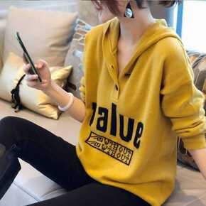 包芯纱针织毛衣女士春秋新款黄色卫衣女宽松韩版显瘦连...