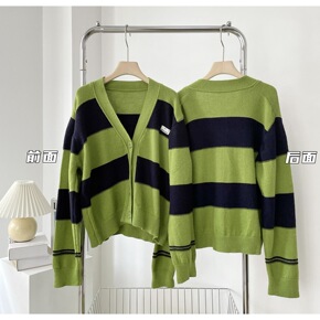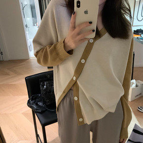 ji致慵懒 斜门襟开衫女针织短款毛衣长袖薄款上衣外...