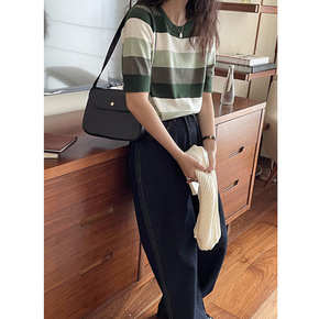 跨境爆款2021冬季新款条纹Y2K长袖针织衫上衣休...