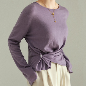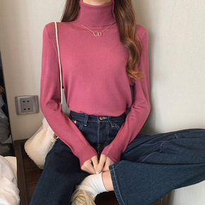 2021秋季新款时尚设计感打底衫纯色圆领套头长袖羊...