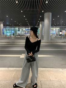 21NEW/百搭U领直角肩打底针织衫女秋季新款内搭...