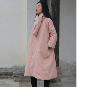 过膝民族风复古棉衣2021冬棉服女加长款大衣加厚宽...