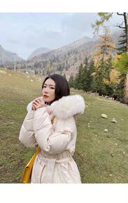 东大门爆款2021冬新款白鸭绒外套女士连帽貉子大毛...