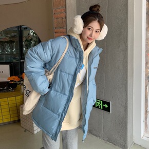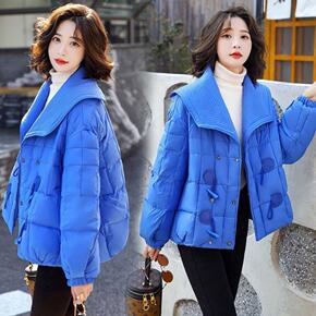 羽绒棉服女2021年新款冬克莱因蓝棉衣加厚宽松棉袄...
