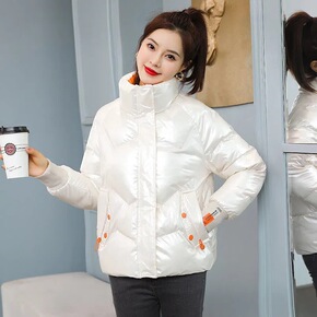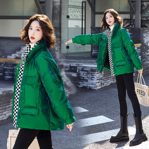 外贸亮面棉服女短款2020新款韩版宽松洋气小棉袄时...