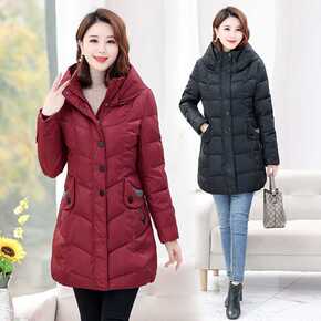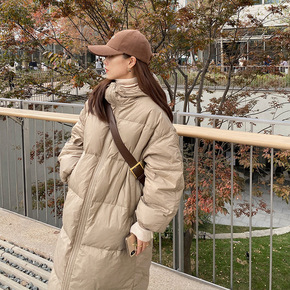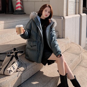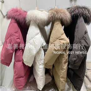 平湖中长款羽绒服女批发2021新款韩版宽松白鸭绒冬...