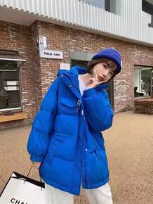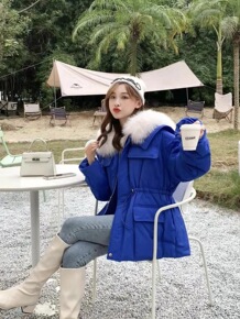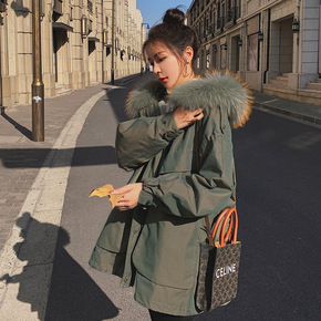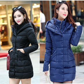 时尚收腰显瘦款连帽棉衣外套女中长款加厚保暖棉服女一...