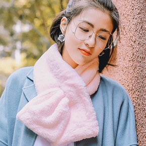 软糯韩国chic加厚纯色毛毛围脖保暖仿獭兔毛交叉围...