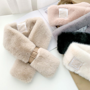 皮带扣毛绒领围巾女秋冬季韩版保暖时尚百搭交叉围脖...